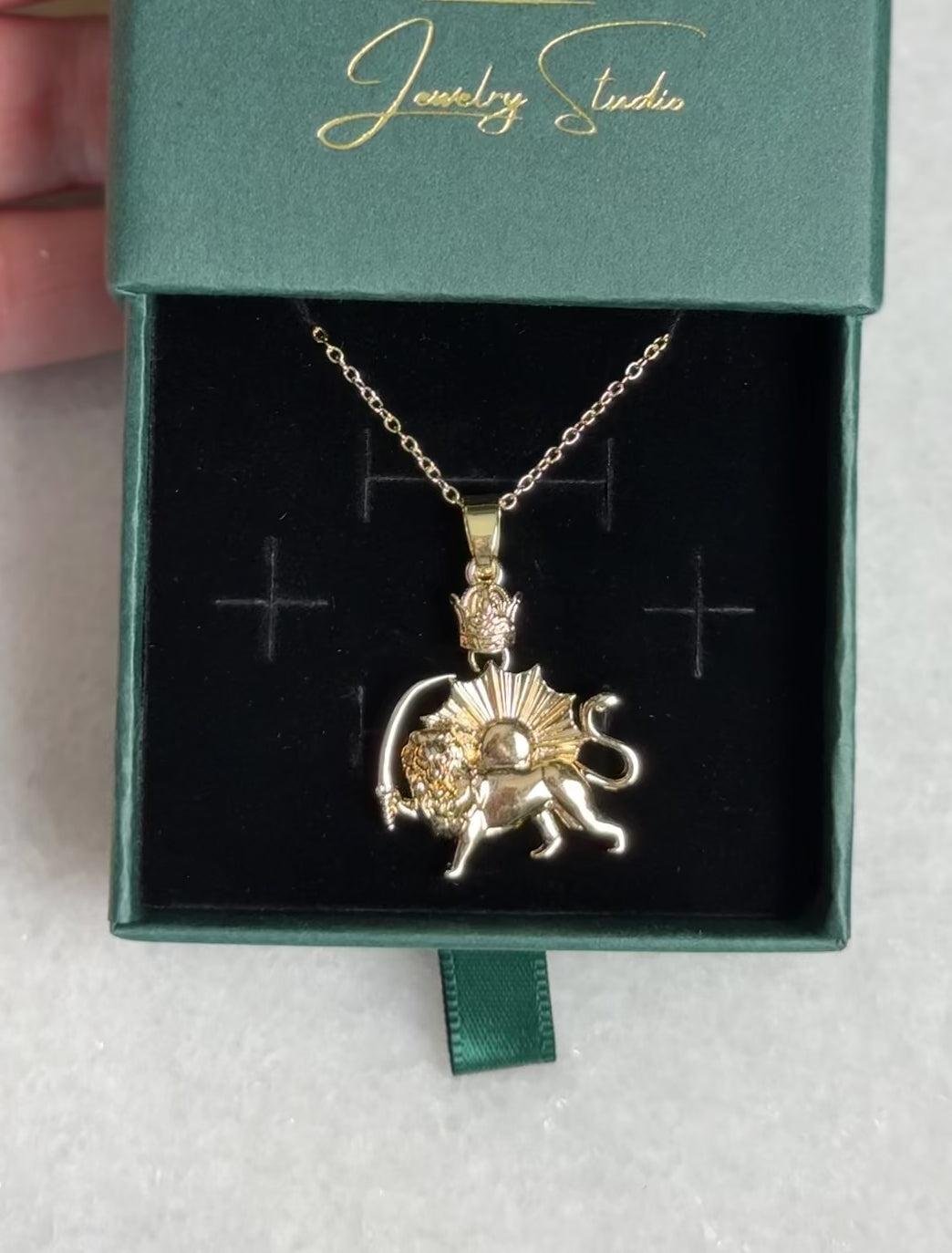 This Lion & Sun necklace carries one of the most powerful symbols in Iranian history, a symbol that has lived through generations, stories, and identity. The lion stands for strength, courage, and resilience, while the sun represents light, life, and hope. Together, they have been a lasting emblem of Iranian identity for centuries.