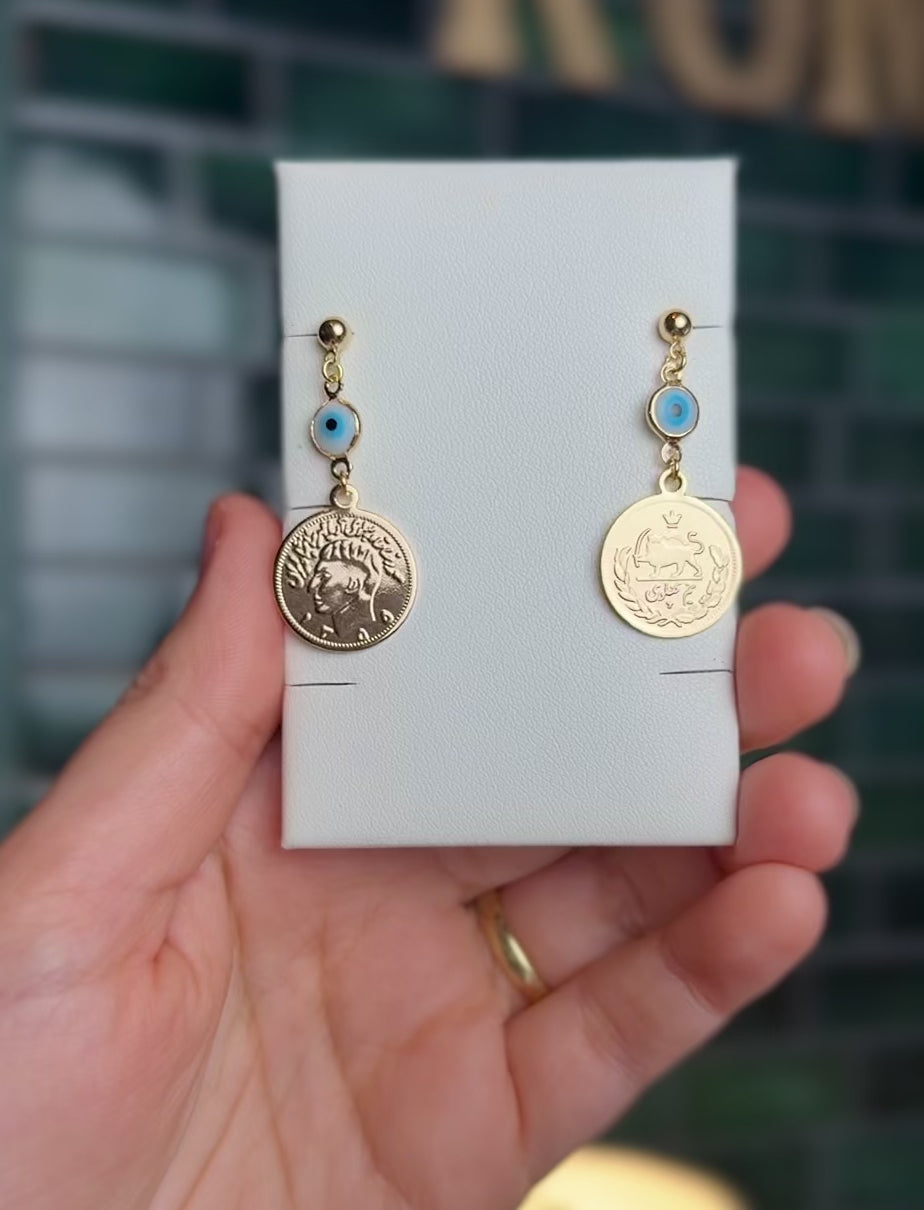 ROMALI Iranian Coin Evil Eye Drop Earrings | 18K Gold-Plated